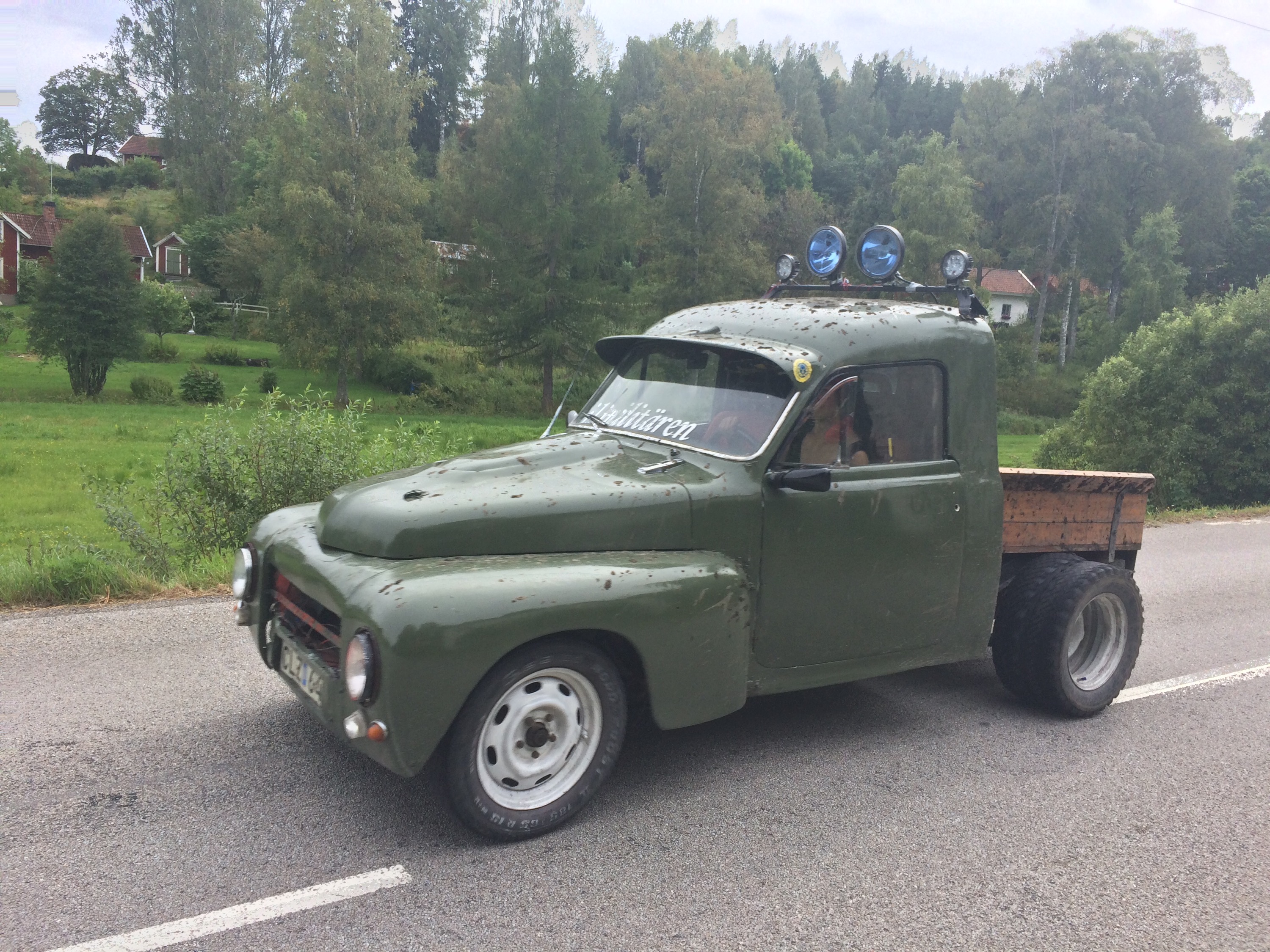 I do not listen to music whilst I ride and am often asked – well once actually, what do you think about alone on your bike all the time? It really depends on how easy the road is to ride. Dirt roads and city streets leave no time for wild thoughts, but pounding along a good straight road with nothing much to see will obviously make you think of family and work and what to write in today’s blog and being in Sweden for so long made me think I would really like a Volvo with three large Hella rally spot lights on the front just like they do here, what do you think Line?