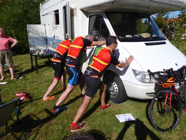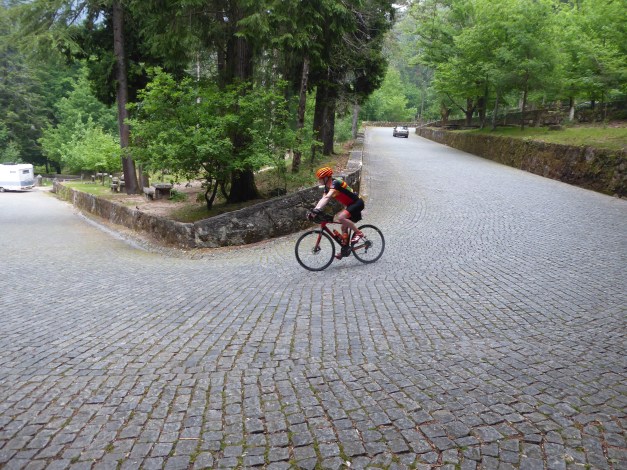 Nigel was succinct, you can’t go down there lads, it’s just gravel, there is no real road, he offered us a ride in the camper but we had had already too much of that on this trip. Looking at the maps there was not an alternative but Garmin suggested there was. So two really tough hills later and an extra couple of miles and we were back on track.
