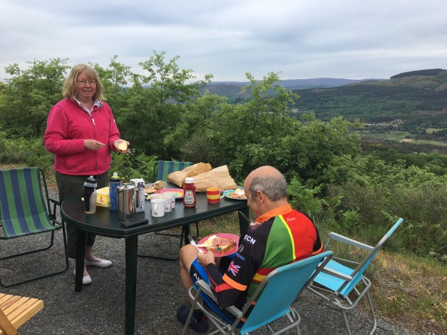 Having had an early stop by 9, before our big 1000ft climb of the day helped, and of any climb we have done it was the most pleasant with the gradient only getting to 7% at worst