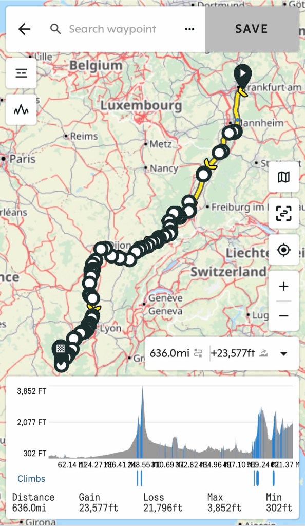 World events allowing our start is just south of Frankfurt and we will cross the Rhine into France running through the Alsace vineyards before climbing the Vosges and onto the Burgundy vineyards! We may have to visit a winery or two.