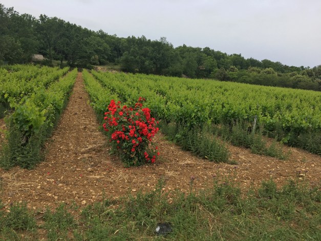 Other scents worth remembering were several roses both in town cheering up the streets and here at the end of a row of vines where they are used to detect disease ( according to Nick )