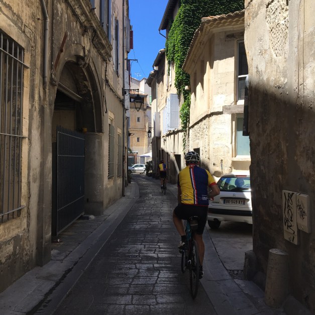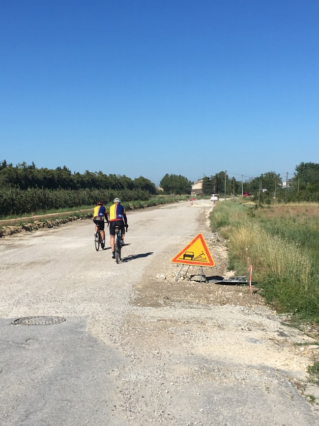This morning started tough almost immediately from our campsite in Fontaine de Vaucluse. Shunning the usual way out we scaled the side of the hill at gradients of up to 19% towards the ancient village of Cabrieres d’Avignon.