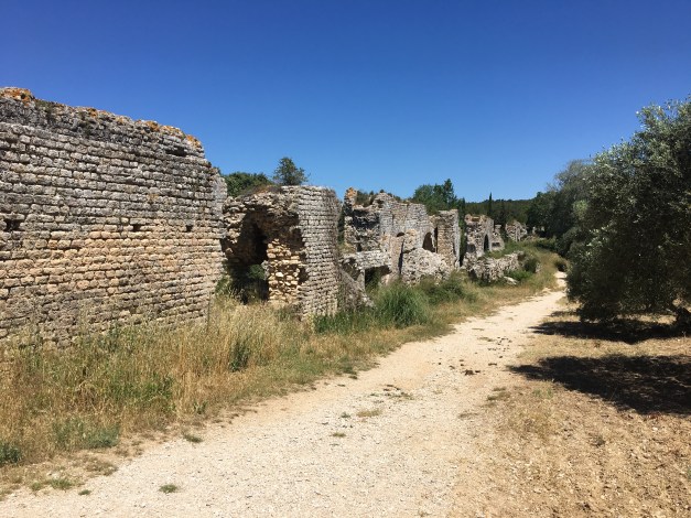 The bilberries were not yet ripe on the Alpilles, but orchards of cherries, peach, apricot, apple and pear on the lower slopes towards the Camargue shows what grows. We also saw Courgettes, vines of course and Olive groves.