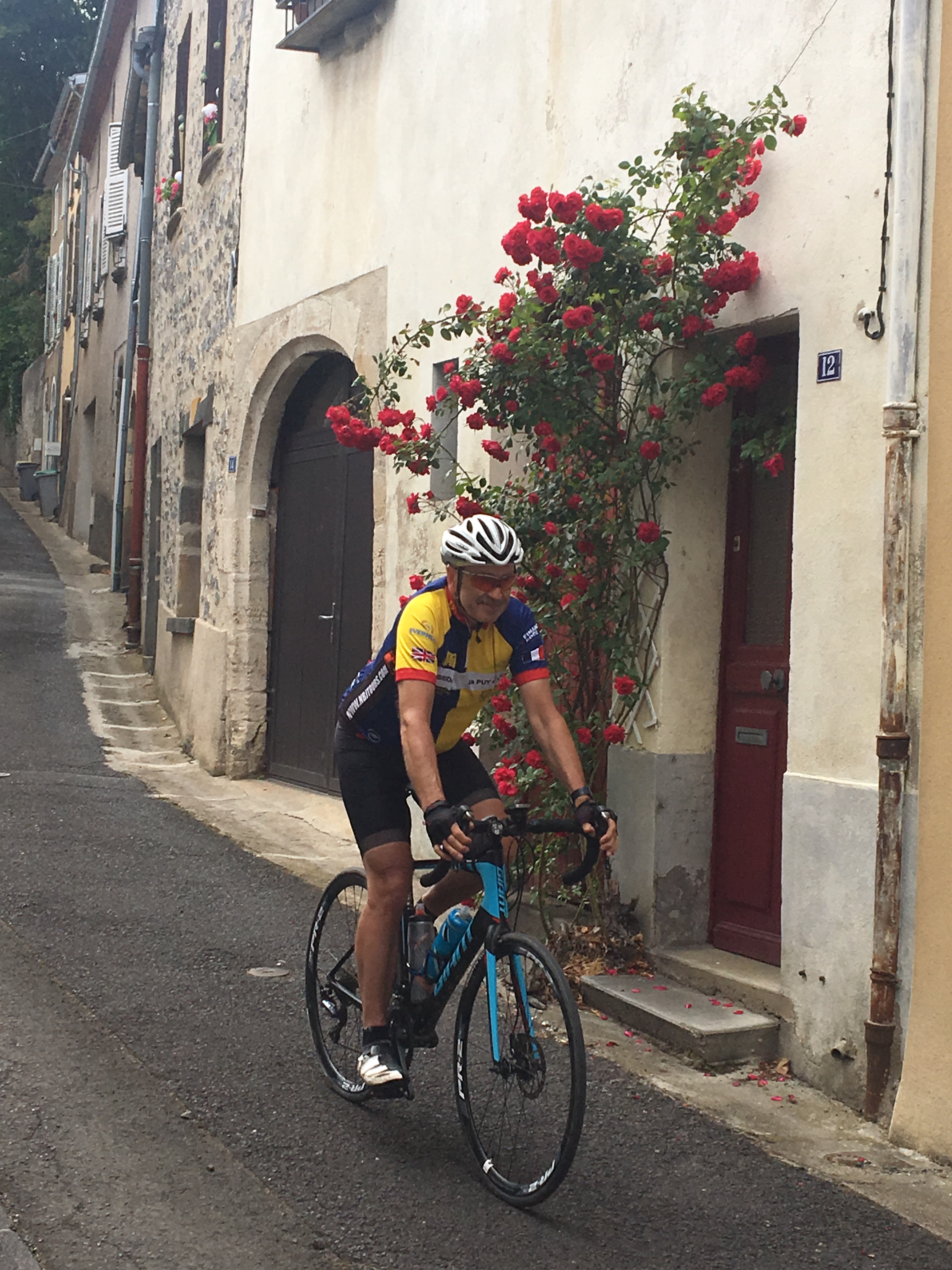 Other scents worth remembering were several roses both in town cheering up the streets and here at the end of a row of vines where they are used to detect disease ( according to Nick )